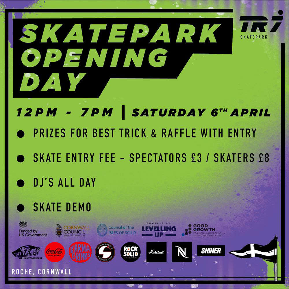 For directions and more information about our skatepark and the grand opening event, please visit our website at www.tr7skatepark.co.uk. Located conveniently close to Roche train station and the A30, the TR7 Indoor Skatepark is easily accessible and ready to welcome skaters and spectators alike.