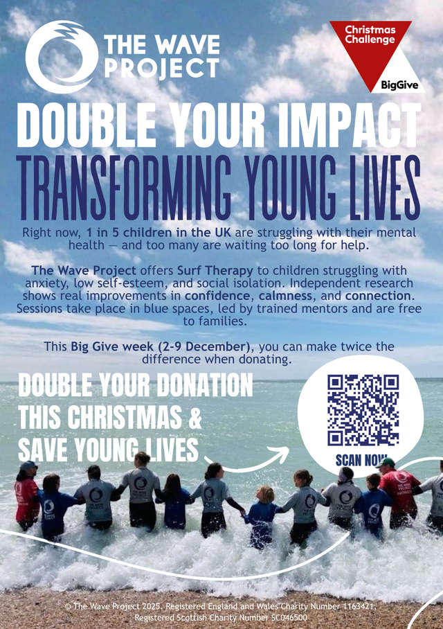 The Wave Project is calling on supporters across the UK to help transform young lives this December, with every donation doubled through the Big Give Christmas Challenge.