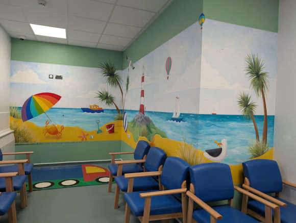 The unit now has a larger waiting area, 2 bays that can hold 4 beds at a time, and 3 new treatment rooms. It is also celebrating 3 new murals. These murals were made possible thanks to the long‑standing support of the St Austell Community Hospital League of Friends.