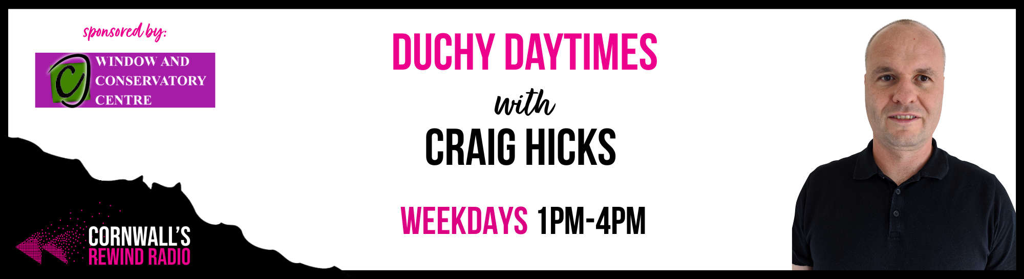 Join Craig Hicks every weekday between 1pm and 4pm for Duchy Daytimes, sponsored by Cornwall Window and Conservatory Centre, Camborne.
