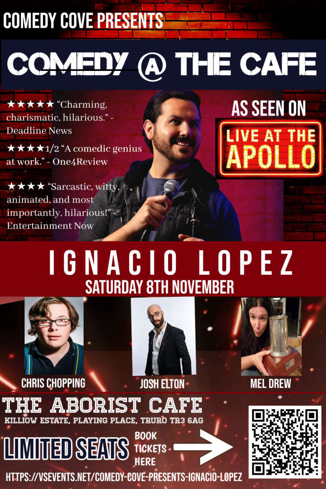 Comedy Cove presents Ignacio Lopez at The Arborist Cafe, Truro. Comedy Cove presents Ignacio Lopez at The Arborist Cafe, Truro.November 8th 2025 The Arborist Cafe, Truro, TR3 6AG
